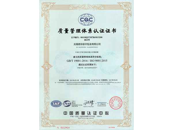 • 质量管理体系认证证书